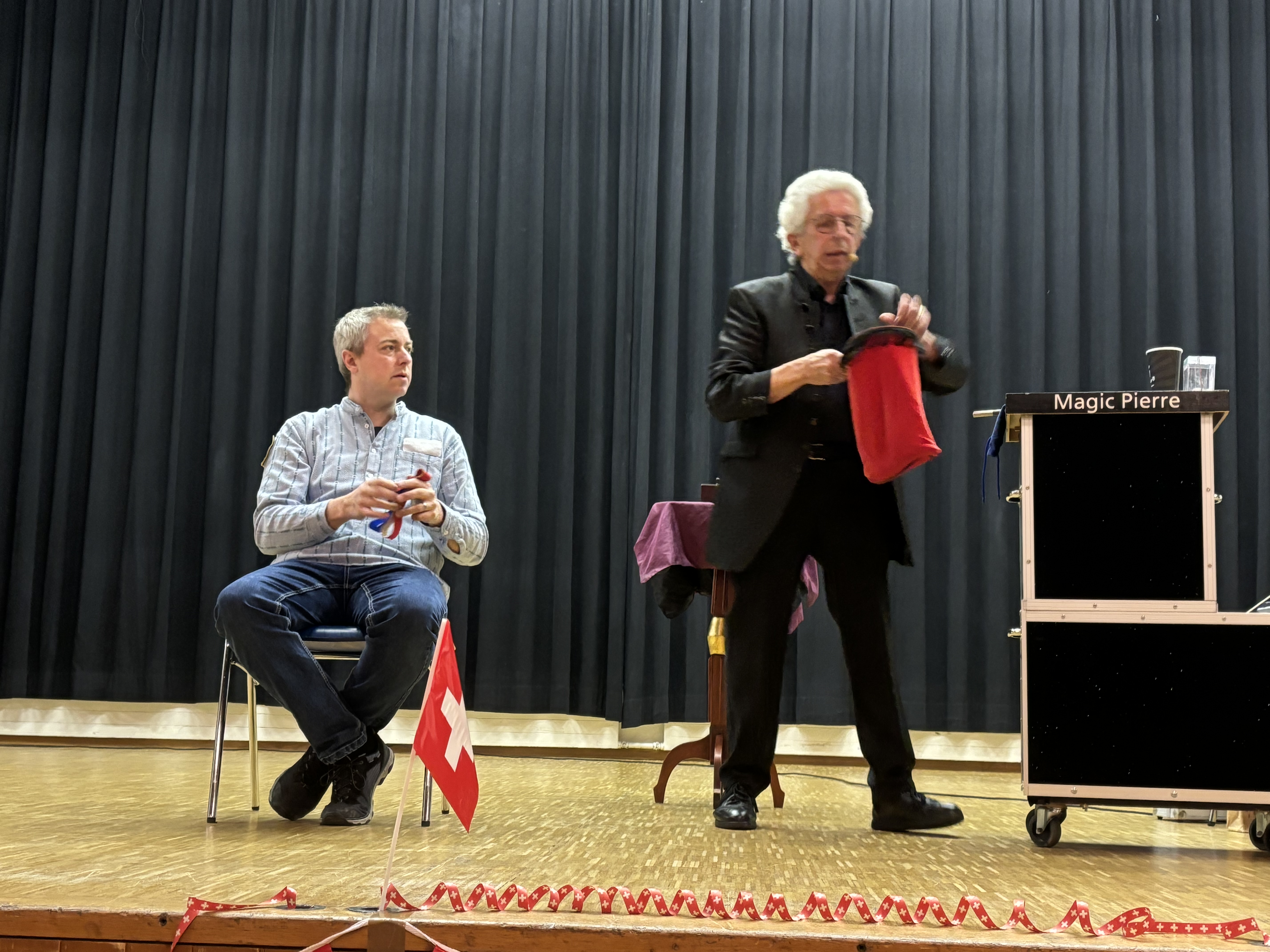 Nach Abschluss des offiziellen Teils wurde das vom zweiten Zug organisierte Abendprogramm gestartet. Der Magier Magic Pierre zeigte sein ganzes Können noch einmal vor dem Dessert, nachdem er sich seit dem Apéro unter die Leute gemischt hatte und sich viele Eingeteilte und Gäste von seinen Kartentricks hatten verzaubern lassen. Danach öffnete bis in die nächtlichen Stunden die Bar, die den verbliebenen Feuerwehrnachtschwärmern und Gästen Platz bot, um über das Vergangene zu diskutieren und einen «Schlummerbecher» zu geniessen.