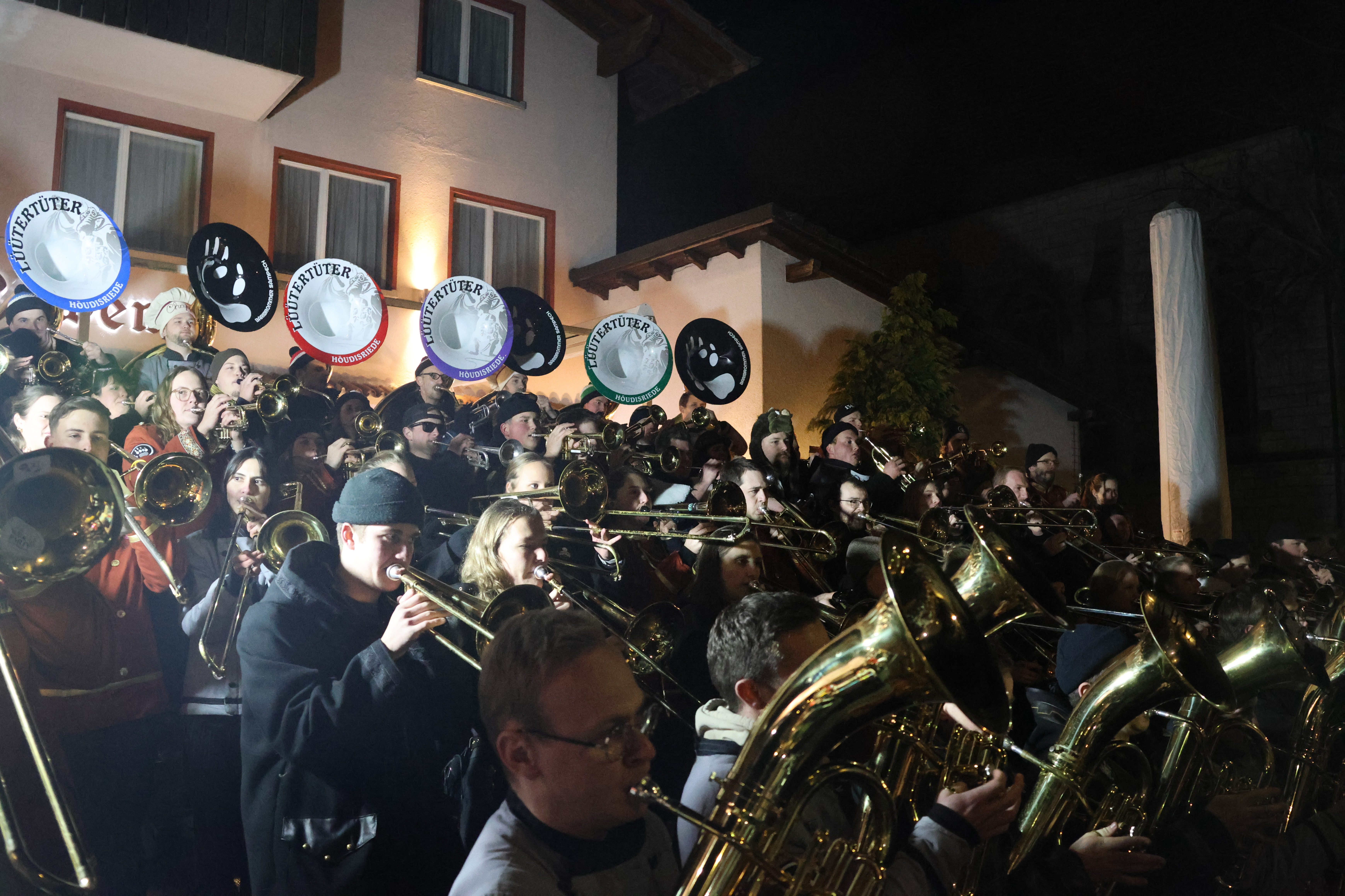 Für mich, wie für so viele aus meinen und den nachbarschaftlichen Reihen, ist dieses guuggenübergreifende Tüüten ein fasnächtlicher Höhepunkt sondergleichen. Und besonders faszinierend finde ich dabei, wie diese Vorfreude bereits ab Minute eins zu spüren war. Schon Wochen vor dem ersten musikalischen Zusammentreffen wurde ihm entgegengefiebert, die gemeinsamen Probentermine (und der Tag danach) dick in den Kalender eingetragen. Und jetzt, wenige Tage vor dem ersten Doppel-Auftritt, ist die Euphorie schon aus den Instrumenten zu hören, ohne sie überhaupt angesetzt zu haben.