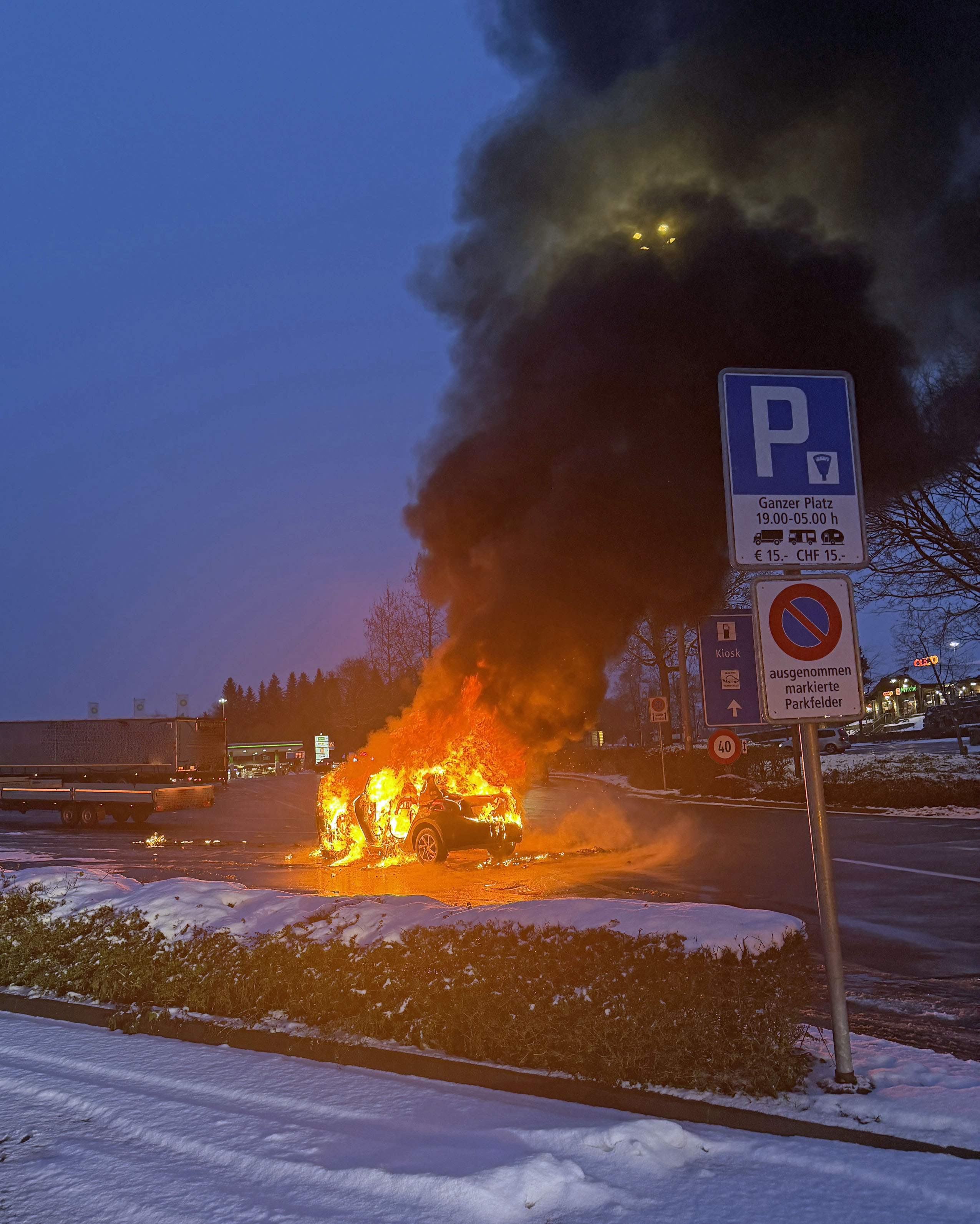 Am Donnerstag war eine Autofahrerin kurz vor 17 Uhr auf der Autobahn A2 in Richtung Norden unterwegs, als sie bemerkte, dass mit ihrem Fahrzeug etwas nicht stimmte. Sie fuhr daraufhin auf den Lastwagenparkplatz bei der Raststätte Neuenkirch. Kurz nach dem Abstellen des Autos geriet dieses in Brand. Die Feuerwehr Emmen konnte das Feuer löschen. Verletzt wurde niemand. Am Fahrzeug entstand Totalschaden. Es musste abtransportiert werden. Für die Reinigungsarbeiten wurde eine Putzmaschine von Zentras aufgeboten.