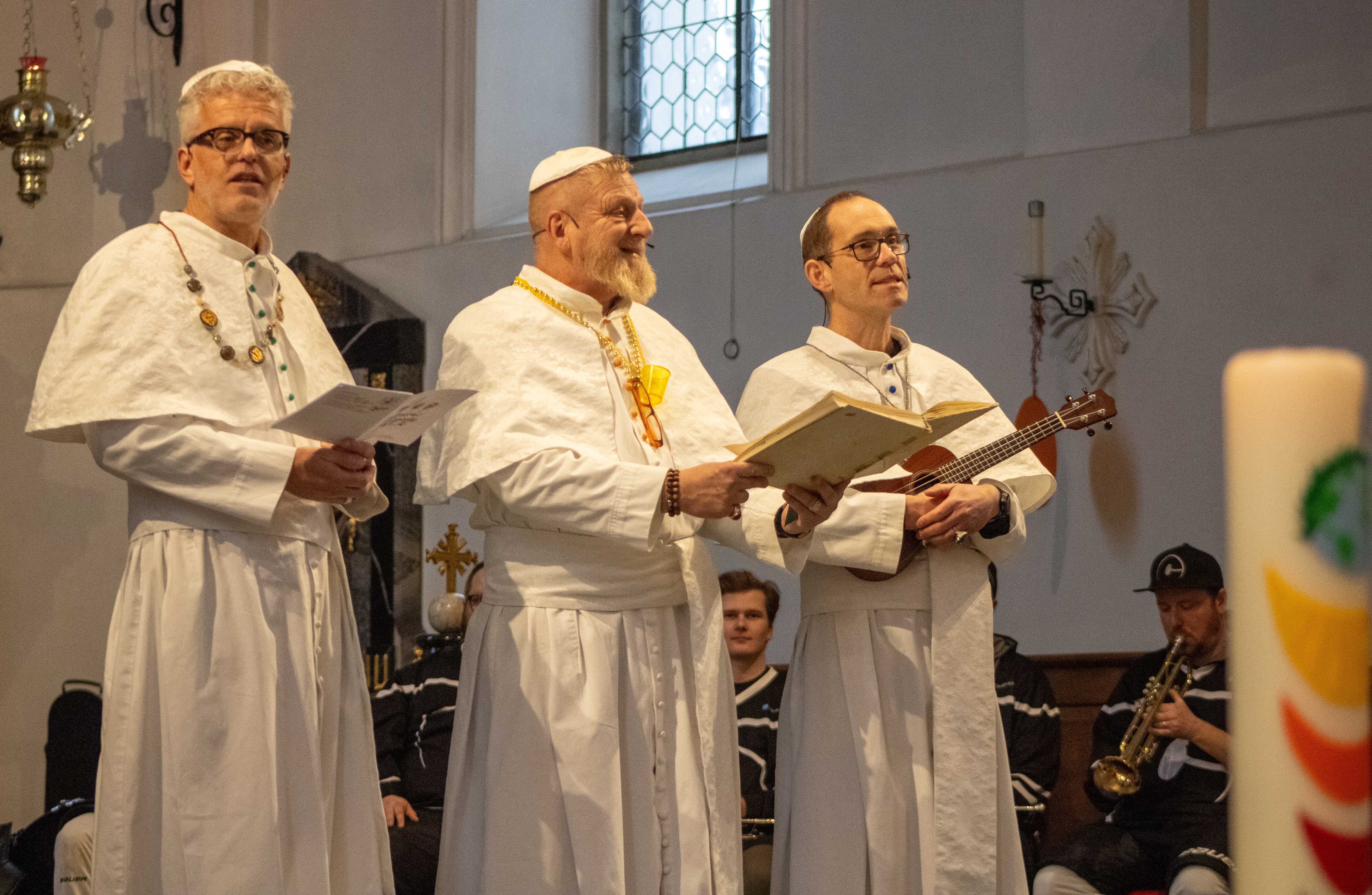 Sie gehören zum Start in die Fasnacht wie Konfetti, Kostüme und der unvermeidliche Kafi Schnaps im Magen. Die drei Theologen Herbert Gut, Urban Schwegler und Franz Zemp sind auch dieses Jahr wieder als päpstliches Trio unterwegs – und zwar bereits zum neunten Mal.