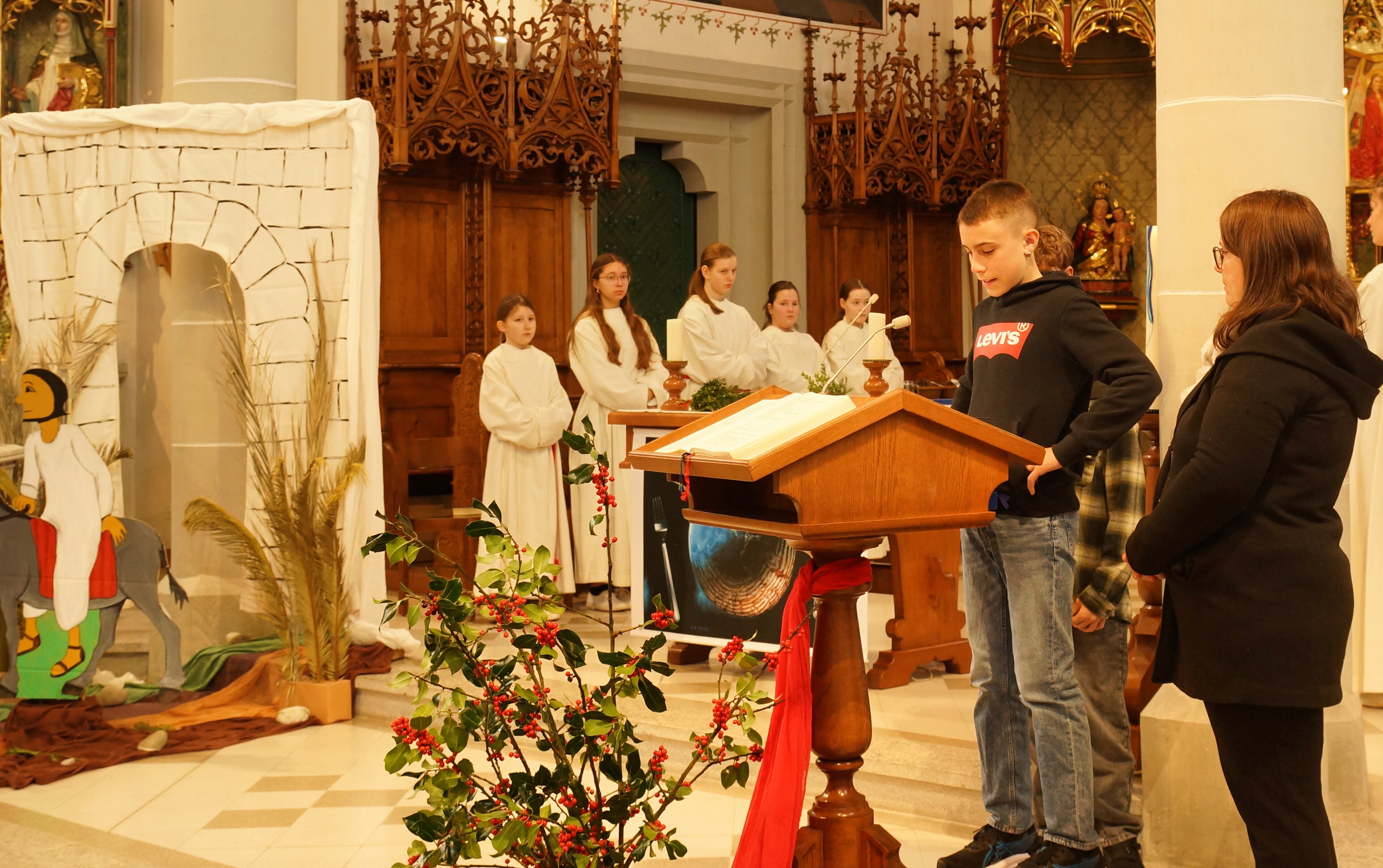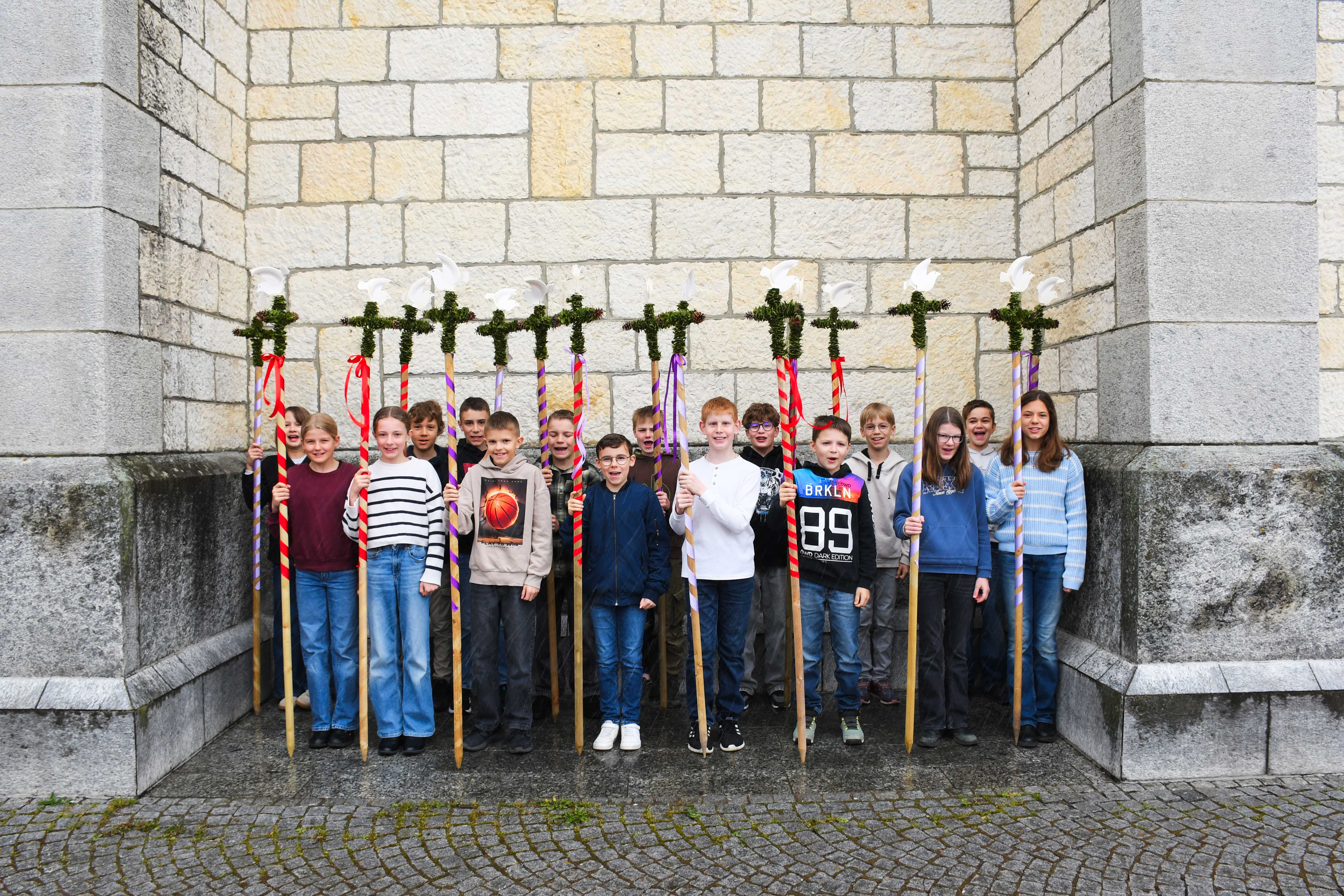 Unter der Leitung von Regula Soom gaben die Schüler und Schülerinnen der 5. Klassen einen Einblick in die Gedanken der Menschen, die Zeugen dieses Ereignisses wurden. Auch steht der Palmsonntag für die Hoffnung, die der Glaube schenken kann, wenn man sich Herausforderungen gegenübergestellt sieht. Der Gottesdienst vermittelte eine klare Botschaft: Gerade in unsicheren Zeiten ist es wichtig, den eigenen Werten treu zu bleiben, auf die innere Stimme zu hören und Vertrauen in Gott zu haben. Der Palmsonntag ermutigt dazu, Haltung zu zeigen und sich für ein friedliches und respektvolles Miteinander einzusetzen – so, wie es Jesus vorgelebt hat.