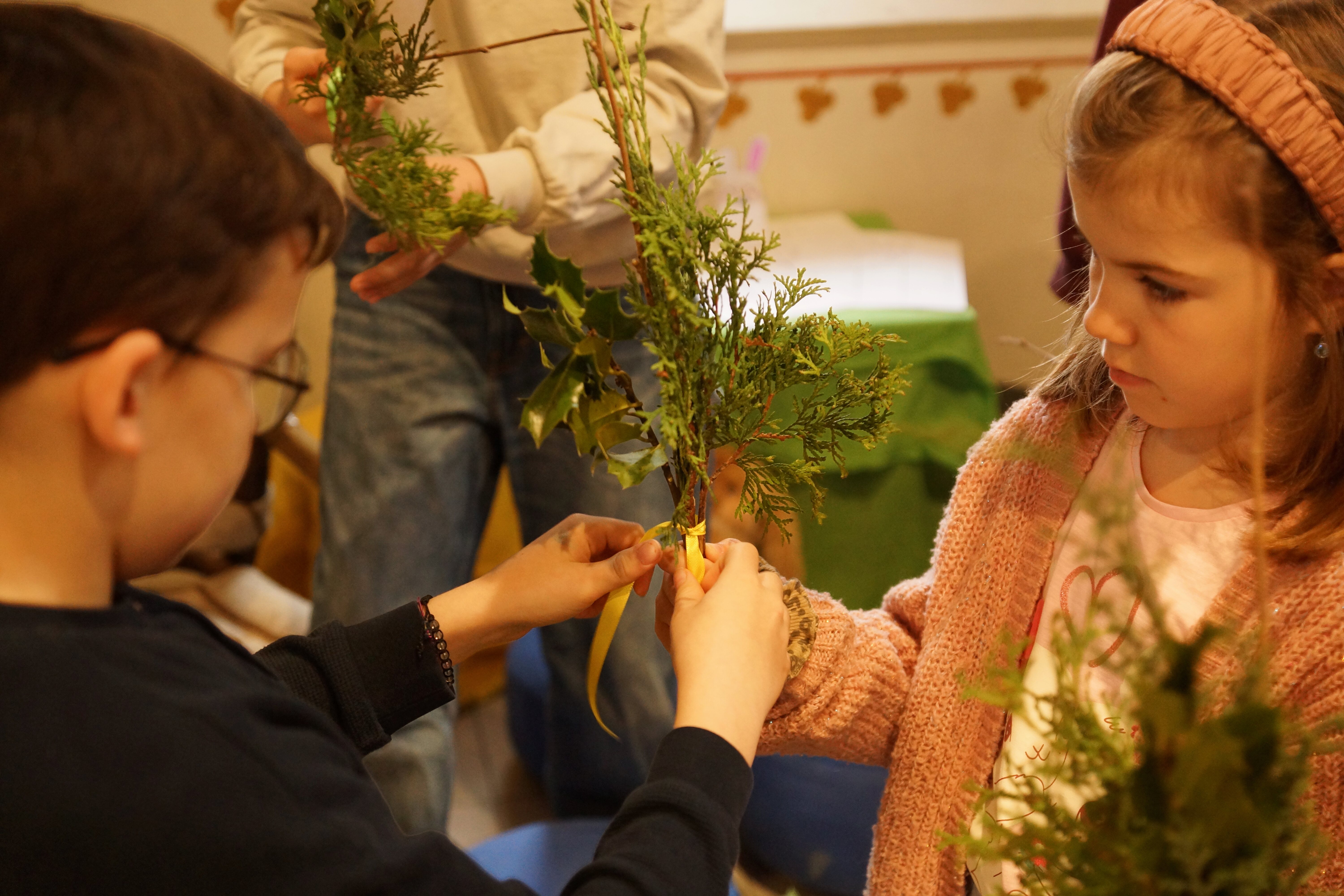 Die Palmkreuze wurden von den SchülerInnen unter fachkundiger Leitung von Hanny und Robi Duss während des Religionsunterrichts hergestellt. Die Kinder waren mit grosser Freude und Engagement dabei. Ein grosser Dank geht an alle, die Palmwedel, Palmstangen und Palmkreuze hergestellt haben. Dank ihnen kann diese schöne Palmsonntagstradition weitergeführt und weitergegeben werden.